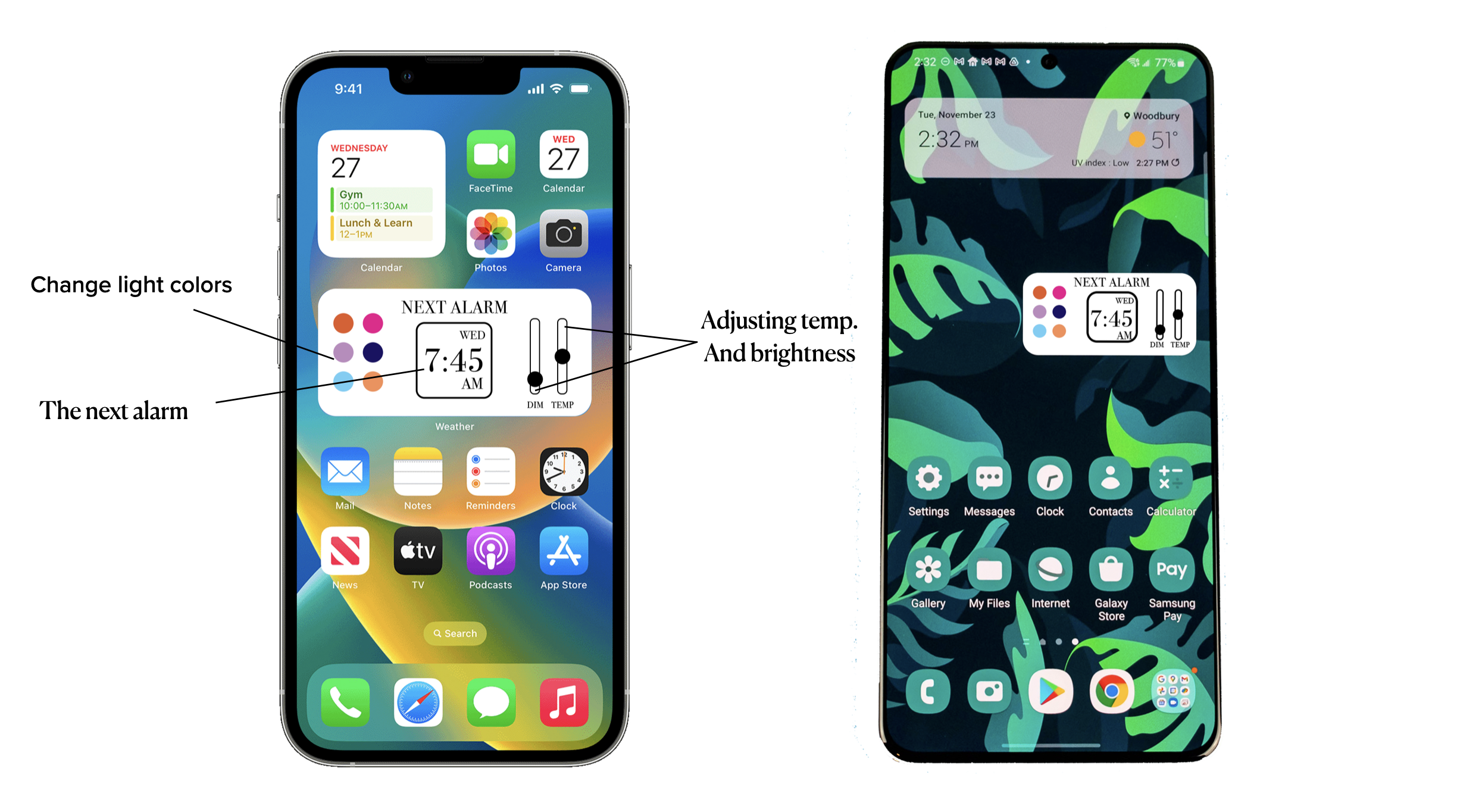 Lunr has features such as wireless charging, uses a widget system to adjust settings, and not only illuminate 10 min before alarms but, it can also be used as a regular desk lamp for optimal use.